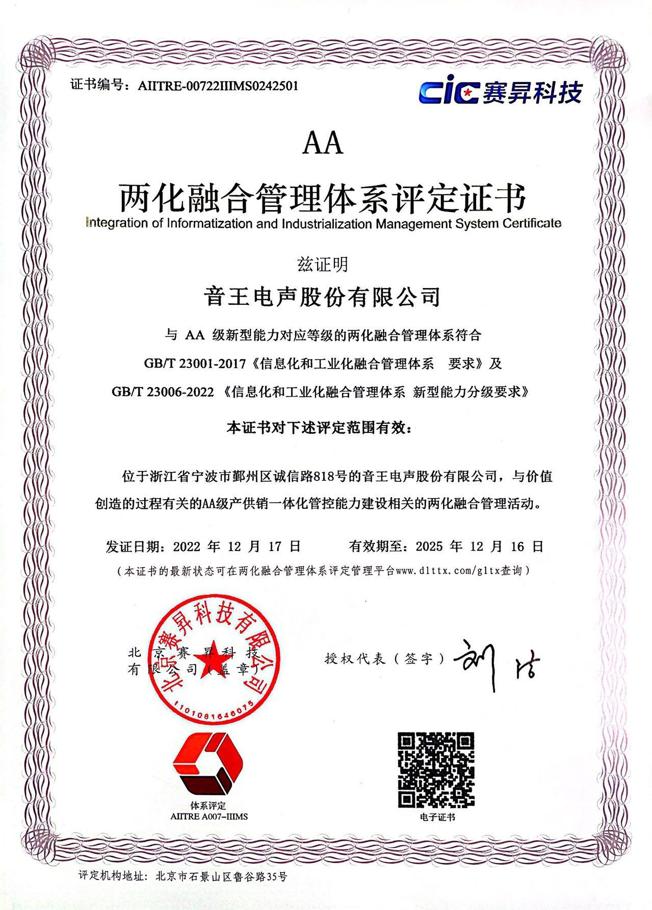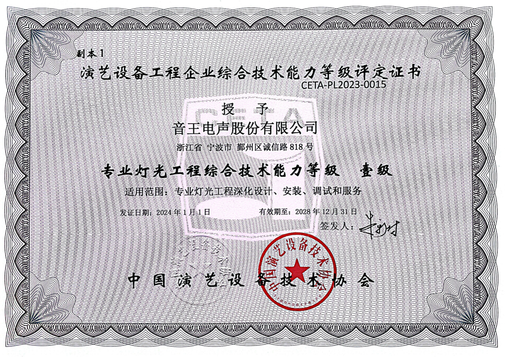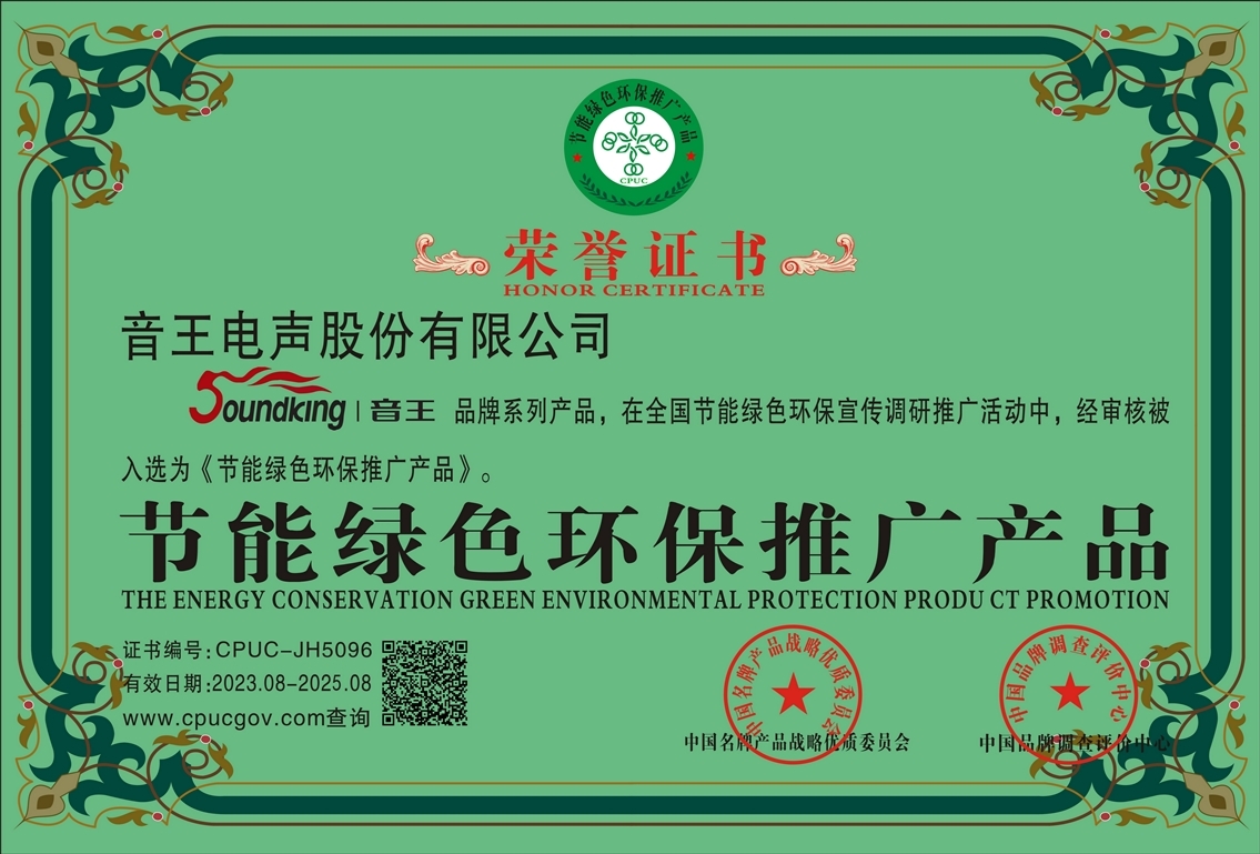 音王擁有“國家企業技術中心”、“國家文化和科技融合示范基地”、“ 國家制造業單項冠軍”、“沉浸聲文化和旅游部技術創新中心”等數十項國家級平臺及殊榮。全球設有22個研發機構,獲得600余項發明及實用專利,成為國家級專利示范企業。2025年經國家權威機構評估音王的品牌市值已達47.2億元。