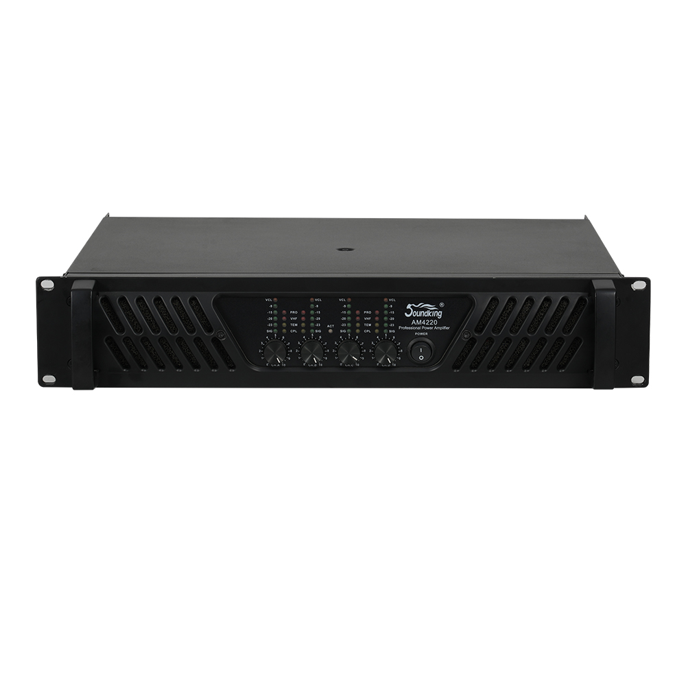 AM4220是全新研發的一款多通道大功率專業功放,采用開關電源加TD類技術設計,TD類功放的特點就是功放供電電壓跟隨輸入信號的大小而變化,放音時功放電壓始終跟隨音樂信號。因此具有接近D類功放的效率又有AB類功放音質。采用先進的通風散熱裝置。專業安全的保護電路:包括直流保護、輸入過載保護、輸出短路保護、輸出過載保護、過溫保護、開關機軟啟動保護、削波失真限制、高度保障功率放大器的安全和可靠性。