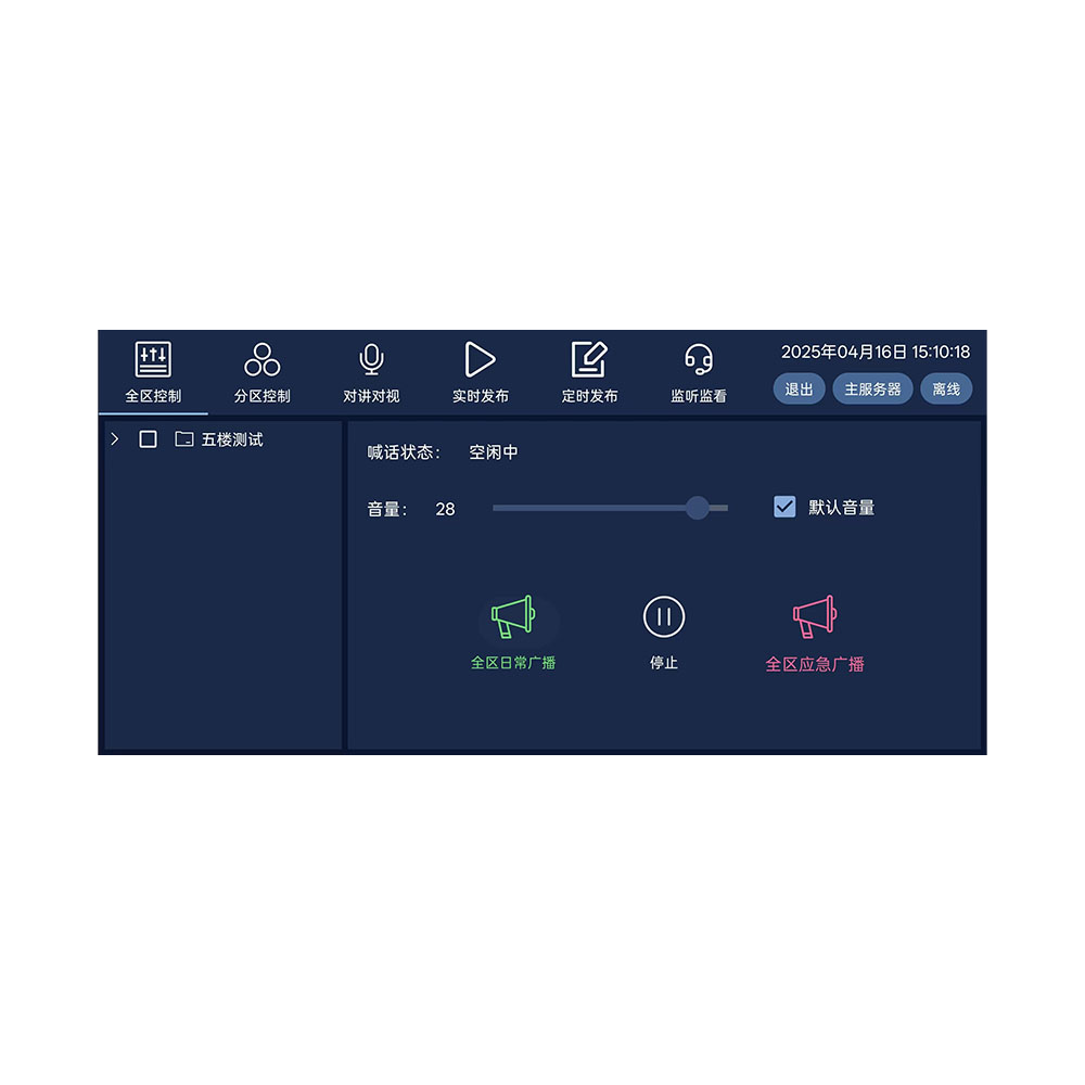 3.可任意選擇終端廣播全區(qū),分區(qū),點(diǎn)對(duì)點(diǎn)進(jìn)行功能操作;