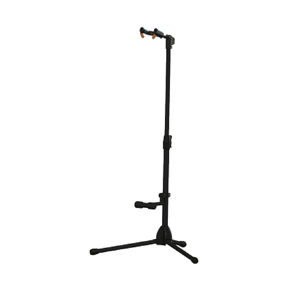 吉他架采用扳扣控制調節升降高度,吉他托頸通過吉他自重實現自鎖功能,撐架EVA管套保護吉他。