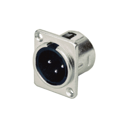 三針卡儂公插座外殼采用高強度鋅合金材質堅固耐用, 鍍銀觸點保證了信號穩定傳輸。標準的D型法蘭通用尺寸適合工程安裝。