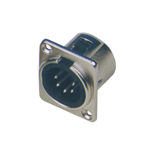 五針卡儂公插座外殼采用高強度鋅合金材質堅固耐用, 鍍銀觸點保證了信號穩定傳輸。標準的D型法蘭通用尺寸適合工程安裝。