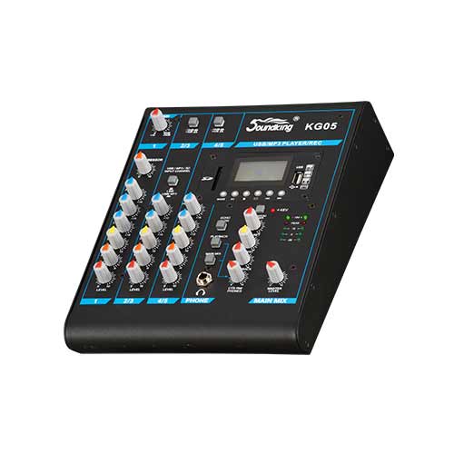 KG緊湊型便攜式調音臺具有同類產品的所有特征和參數,性價比更高。包含3段EQ、內置通道壓縮、CEHO效果和多用途的MP3、USB、SD卡播放和錄音系統,配置1路MIC通道,可以通過USB接口連接電腦進行放音和錄音。