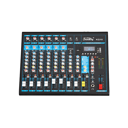 KG緊湊型便攜式調音臺具有同類產品的所有特征和參數,性價比更高。包含3段EQ、內置通道壓縮、CEHO效果和多用途的MP3、USB、SD卡播放和錄音系統,配置1路MIC通道,可以通過USB接口連接電腦進行放音和錄音。