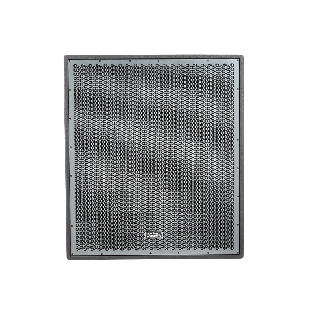 TS-SUB由二只18”低頻紙錐揚聲器組成,倒相式箱體設計,對角式單元安裝,有效的減輕了箱體駐波,又得到了緊湊的箱體外觀。為充分發(fā)揮揚聲器的性能,音箱內(nèi)部無分頻網(wǎng)絡,通過外接數(shù)字音響處理器分頻優(yōu)化。箱體采用18mm波羅的海樺木層夾板制作,嵌槽式結(jié)構(gòu),剛性好,無聲染。