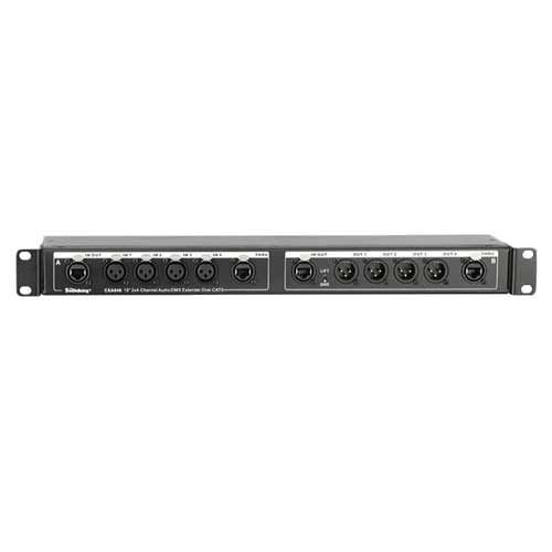 標準19”四通道音頻傳輸盒具有獨立的四個XLR-F輸入和四個XLR-M輸出以及每組具有兩個并聯連接的RJ45型網絡連接器。使用一根網線即可以在100m以內傳輸四路模擬音頻信號或AES/EBU數字音頻信號(注意網線必須是屏蔽線才能通過幻象電源),輸出設有接地開關能幫助消除由于接地回路引起的嗡嗡聲,除了傳輸音頻信號,也可傳輸燈光信號。