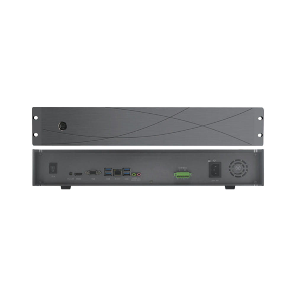 采用全鋁合金拉絲工藝,標(biāo)準(zhǔn)19寸機(jī)柜式安裝設(shè)計(jì),外型沉穩(wěn)大氣、細(xì)節(jié)精致機(jī)身卻配備高端配置,主要裝載無(wú)紙化會(huì)議投影軟件,配合無(wú)紙化其他設(shè)備實(shí)現(xiàn)參會(huì)人員可自行將講稿內(nèi)容投影到會(huì)議室大屏幕,或者有秘書(shū)終端管理后再投影;會(huì)議秘書(shū)還可根據(jù)本單位的要求選擇宣傳片、音樂(lè)進(jìn)行投影播放。